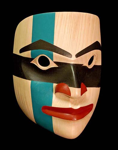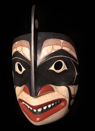 Carved masks are used extensively in dancing and other ceremonial functions in Northwest Coast Native tradition. Woods typically used are cedar and alder, which were widely available. Masks can be basic or quite elaborate, with eyes that open or one creature that transforms into another as part of a story.